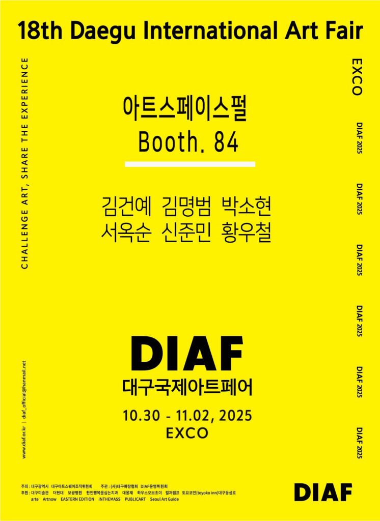 Diaf2025 Post author:artpurl Post published:2025년 12월 8일 Post category:EXHIBITIONS Tags: diaf2025, 디아프, 아트페어 Read more articles Previous Post2019 아트제주2019 / 아트페어 You Might Also Like 고려명개인전 – 초.충.도 2017년 7월 5일 황우철 개인전 – 편도여정 One way ticket 2015년 6월 10일 Junmin Shin, LightWalk 2025년 9월 23일