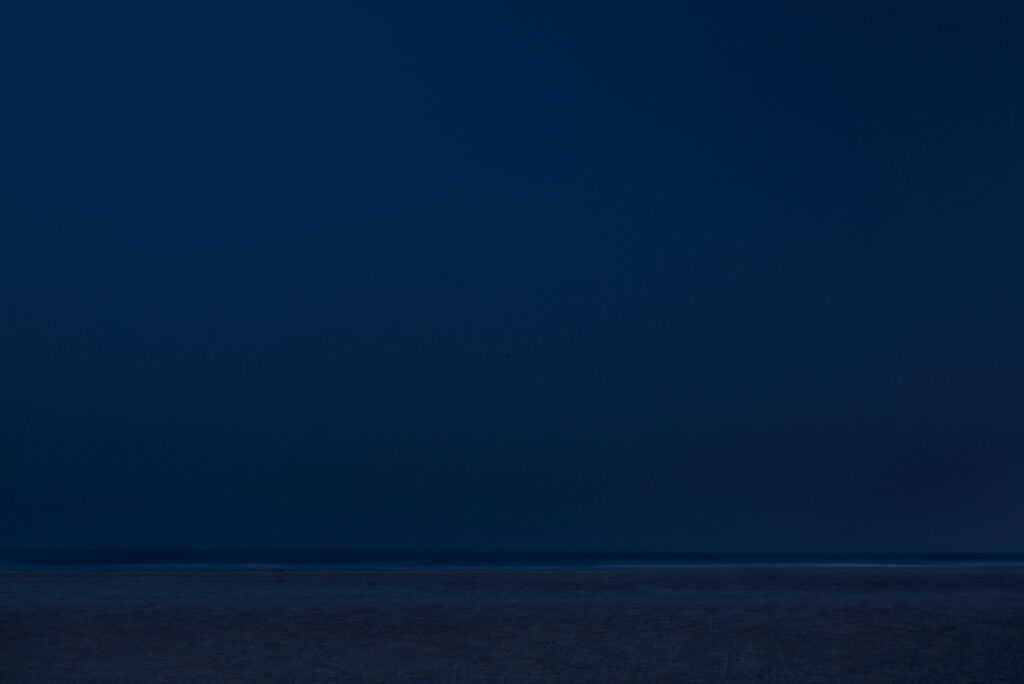 일상을 벗어나 온전히 어둠 속에서 마주한 바다풍경, 하늘과 바다 사이에서 빛의 탄생, 깊은 어둠 속 바다와 하늘 사이에서 별처럼 반짝이는 빛, 어둠 속 점점 밝아오는 하나의 거대한 수평선으로 갈라지는 하늘과 바다, 형언할 수 없는 하늘과 바다의 숭고한 아름다움, 거대한 자연 앞에서 작가는 겸허한 마음으로 비현실적인 오묘함을 카메라에 담았고 그 순간, 바로 이번 전시작 심연을 품고 벽해(碧海)를 담은 ‘나는 바다이고’였다.